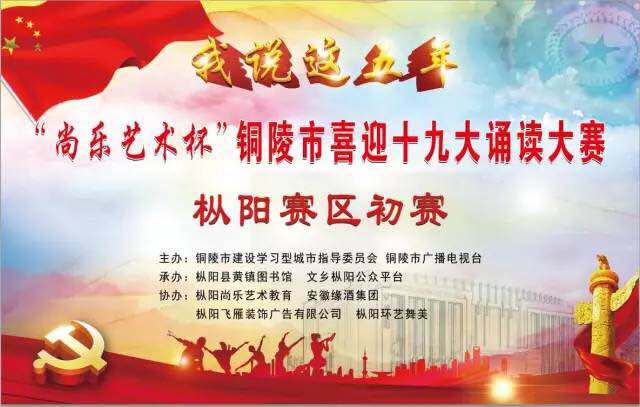 8月26日,在汉武文化浓郁的枞阳旗山脚下,文墨飘香的黄镇图书馆内,“尚乐艺术杯”铜陵市喜迎十九大诵读大赛如期举行。本次大赛由铜陵市建设学习型城市指导委员会和铜陵电视台主办,安徽缘酒集团协办。活动自筹备以来,受到了广大市民的热切关注,大家积极参与踊跃报名,期间收到了很多铜陵枞阳融合以来反映家乡变化,讴歌大美枞阳的优秀原创作品。组委会细致安排,选手们精心准备。当天比赛正常有序进行,铜陵网络电视台进行了同步直播。在舞台上有稚气未脱的孩童、也有风华正茂的少年,还有很多热爱朗诵的叔叔阿姨,选手们在和谐的比赛氛围中为大家奉献了一场精彩纷呈的文化大餐,为喜迎十九大献礼!