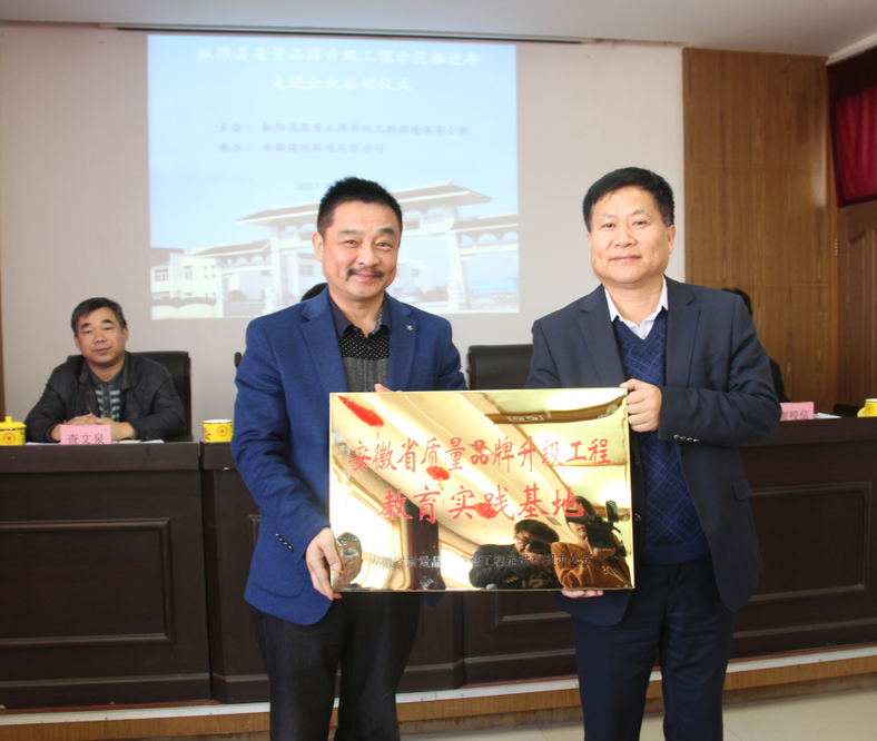 为贯彻省委、省政府“加快调结构转方式促升级行动计划和五大发展行动计划”重大战略决策,全面推进和部署2017年度全县质量品牌升级工程示范年工作,在全县广泛形成“质量第一、品牌引领”的浓厚社会氛围,推进质量品牌升级工程深入实施,推动质量强县示范城县创建深入开展。11月9日上午,由枞阳县质量品牌升级工程推进小组主办,安徽缘酒酿造有限公司承办的枞阳县质量品牌升级工程示范推进年走进企业启动仪式在安徽缘酒集团举行。