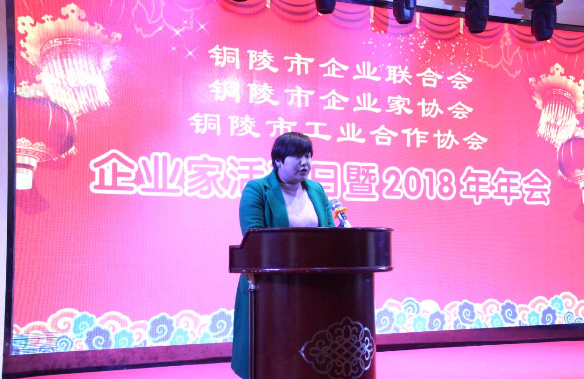 2月1日下午,铜陵市企业家联合会、铜陵市企业家协会、铜陵市工业合作协会(简称“三会)”企业家活动日暨2018年年会在铜陵东宸大酒店隆重召开。“三会”轮值会长、副会长、咨询委、秘书处,部分常务理事、理事、县区企联等有关成员参加。安徽缘酒集团董事长助理、安徽缘酒酿造有限公司执行董事钱颖作为常务理事单位代表参加此次会议。大会特邀市经信委、市人社局、市总工会、民政(民管)局、中小局、法院、金融、党建指导员等部门负责人出席。