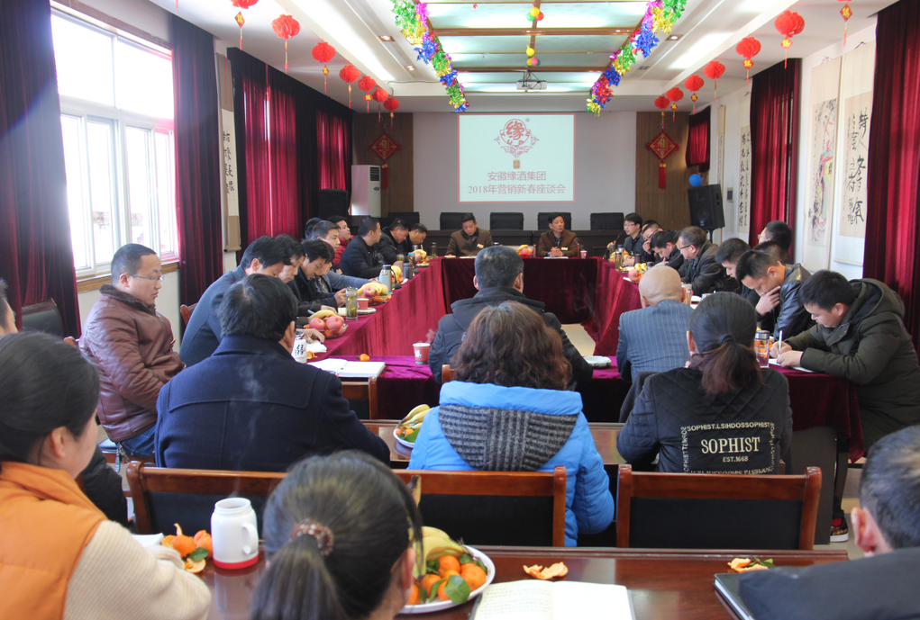 新年新气象,缘酒新发展。为做好2018缘酒营销工作,站在更高的起点开拓市场销售。2月23日下午,安徽缘酒集团2018年度营销人员新春座谈会在公司大会议室召开,集团董事长黄悦,董事长助理钱颖,总经理王飞以及全体营销人员和行管人员参加。会议由营销总监张慕光主持。