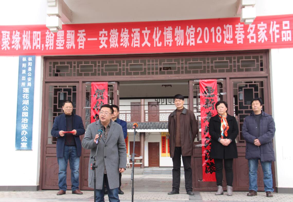 枞阳县文化委主任周剑斌,县旅游局局长查乐乐,县文联主席章宪法,安庆市原书协主席、安徽缘酒文化博物馆名誉馆长余龙生,安徽缘酒集团党支部书记、安徽缘酒文化博物馆馆长黄晔等出席参加。枞阳县书协主席高耀庭主持开展仪式。