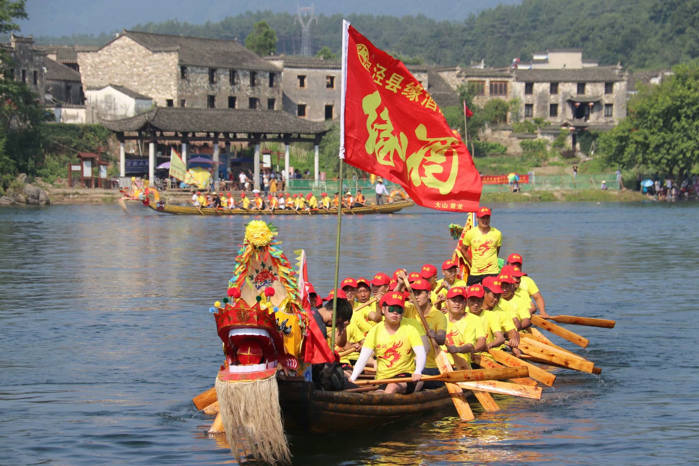 6月18日上午,适值农历五月初五端午节当天,由安徽缘酒集团和泾县缘酒酒业联合开展的端午龙舟赛在泾县桃花潭成功举办。当天上午,安徽缘酒集团总裁黄晔、泾县缘酒酒业总经理吴卫国等出席比赛现场。