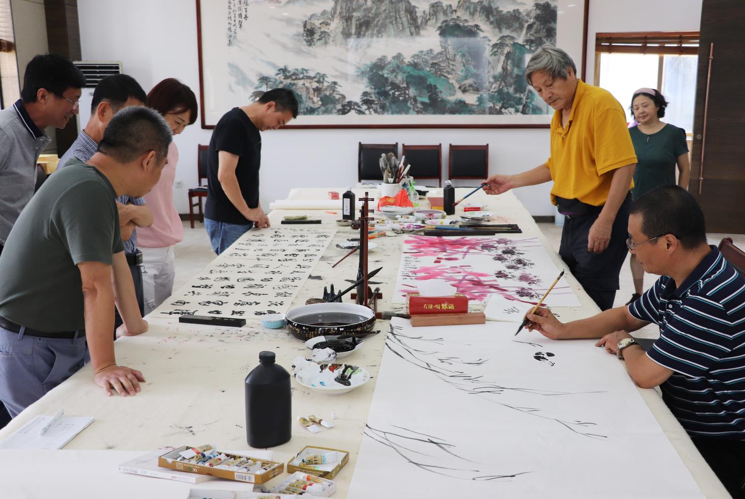 当天下午,在黄晔总裁的陪同下大家还参观了缘·工厂书画展馆和安徽缘酒文化博物馆,进一步了解缘酒企业文化发展。随后,在博物馆贵宾接待室书画家们现场挥毫泼墨,留下多幅寓意美好、祝福缘酒企业发展的书画墨宝。