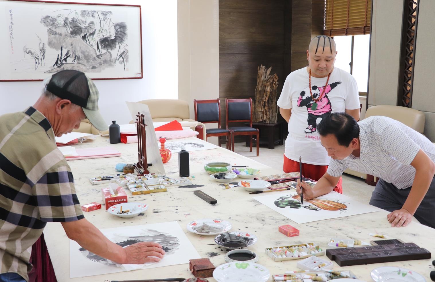 9月12日下午,著名画家李成城、中国当代青年画家章大方来安徽缘酒集团开展笔会创作,著名影视演员三毛应邀也来到笔会创作现场。在博物馆贵宾接待室书画家们现场挥毫泼墨,留下多幅寓意美好、祝福缘酒企业发展的书画墨宝。
