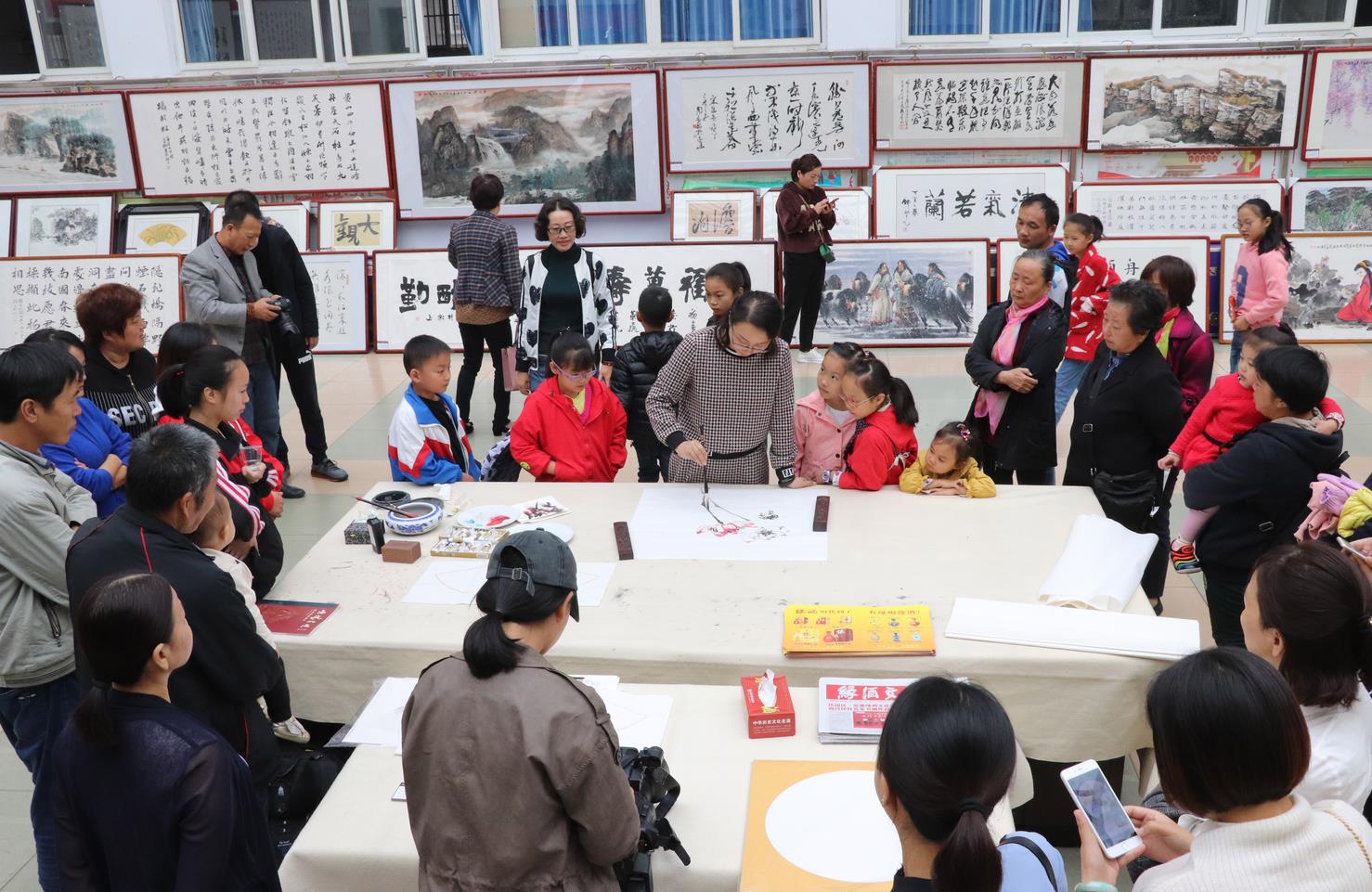 此次书画收藏展,特别邀请了著名书法家、安徽省书协名誉主席张良勋先生为本次收藏展题写展签。 展出中,还邀请了中国美术家协会会员、中国工笔画协会会员范凤清老师即兴挥毫泼墨,吸引了众多书画爱好者观摩。