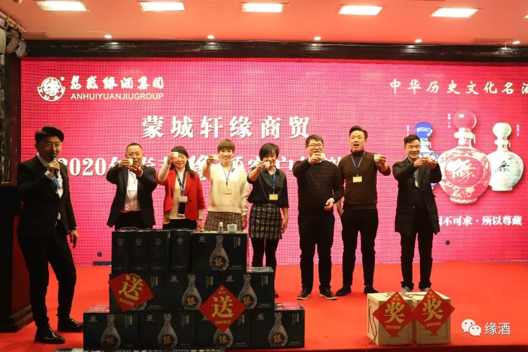 为答谢广大经销商对缘酒品牌的信赖和支持,进一步稳固蒙城市场,12月8日,安徽缘酒集团蒙城轩缘商贸2020年新春订货会在庄子故里——蒙城庄子国际大酒店举办。集团董事长助理钱颖,市场总监荣秩五,蒙城轩缘商贸总经理邸克轩及终端客户300多人参加本次订货会。