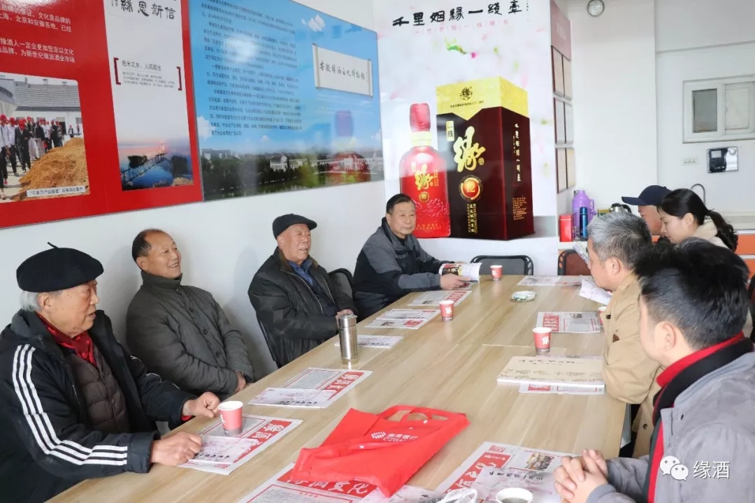 12月29日上午,安徽省老年书画研究会会长汪书贵,安徽翰墨艺术书画院院长刘凤宝,安徽老年书画研究会副会长张广进、朱家修,安徽国立书画院执行院长薛升,安徽国立书画院淮北分院院长李群峰一行来到安徽缘酒文化博物馆座谈交流。座谈会上,黄晔先生向大家介绍了缘酒企业经营状况以及缘博馆、缘酒企业文化的打造,并对老年书画院领导一行对缘酒企业的发展给予的支持表示感谢。