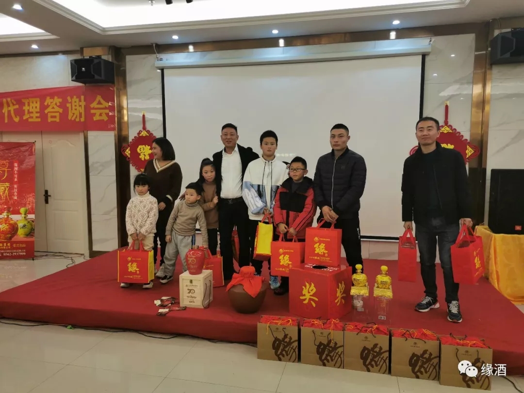 2020年1月14日,新春佳节来临之际,缘酒广德客户答谢会在广德市杭庭大酒店隆重举行,安徽缘酒集团营销副总监熊远星,广德缘酒总代理胡兵兵,及团购客户,终端客户和消费者三百多人参加。晚会由著名影视演员三毛,娜娜主持。