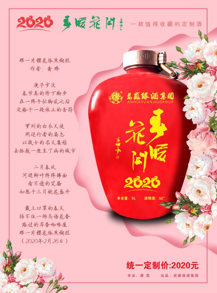 1.此次征稿作者将赠送由安徽缘酒文化博物馆提供的“春暖花开”缘酒一坛,全国统一定制价2020元/坛。(此款产品采用景德镇优质红色陶瓷,容量为5L,装置公司存储10年以上优质原浆酒,酒精度数为52°)(酒水邮费作者自付)。