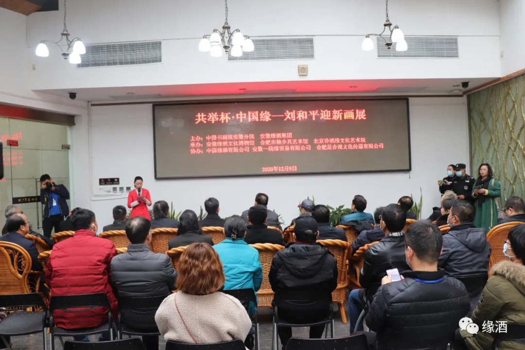 “共举杯·中国缘——刘和平迎新画展”今天在我们安徽的省城合肥赖少其艺术馆隆重开幕了,我谨代表缘酒文化博物馆艺术顾问和朋友们表示热烈的祝贺!