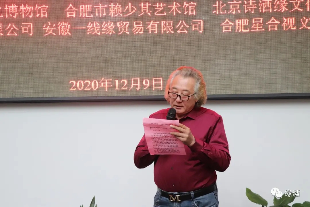 安徽自古就是英豪百出,人杰地灵的地方。有缘千里来相会,今天由中国书画院安徽分院、安徽缘酒集团联合主办的“共举杯·中国缘”安徽缘酒文化博物馆收藏本人画展在这里举办,我感到非常的荣幸!