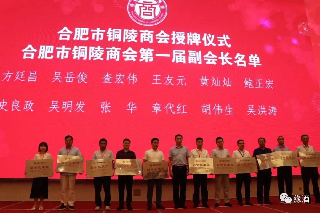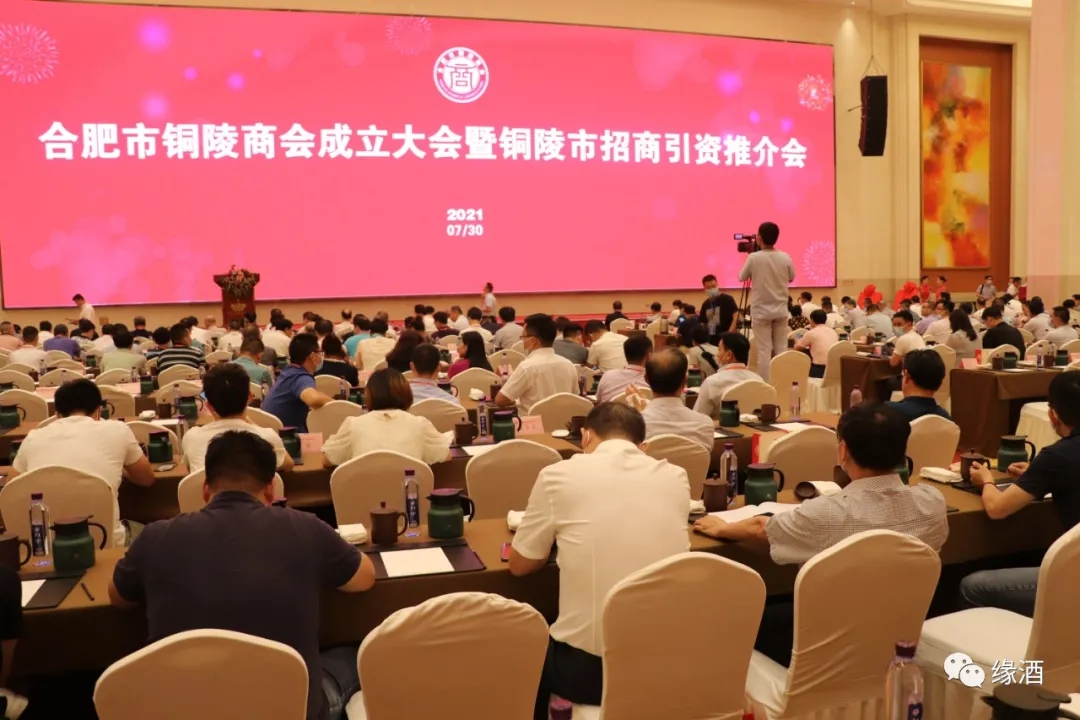 7月30日,由合肥市铜陵商会主办,中国缘酒有限公司等协办的合肥市铜陵商会成立大会在合肥白金汉爵大酒店召开。