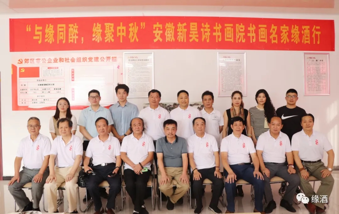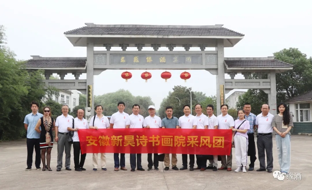 8月28日,在安徽新昊诗书画院院长曹怀玉先生的带领下,新昊诗书画院副院长、著名山水画家李春染,安徽省诗书画研究会理事王牧鹰,中国书法家协会会员、宿州市书法家协会副主席、新昊诗书画院副院长黄权,中国书法家协会会员、淮南市书法家协会副主席、新昊诗书画院副院长马凤光,安徽潜川画院院长、职业画家李其平,中国国家书法协会上海分会高级顾问,新昊诗书画院副院长杨逸夫,新昊诗书画院副院长、著名花鸟画家、砚雕家胡华勇,新昊诗书画院常务理事、著名书法家黄一民,职业书画家纪俊、职业花鸟画家赵晶,著名花鸟画家顾成杰,安徽玥茹建设有限公司总经理毕胜利等十多位书画名家齐聚安徽缘酒集团生产基地参观并开展书画创作活动。