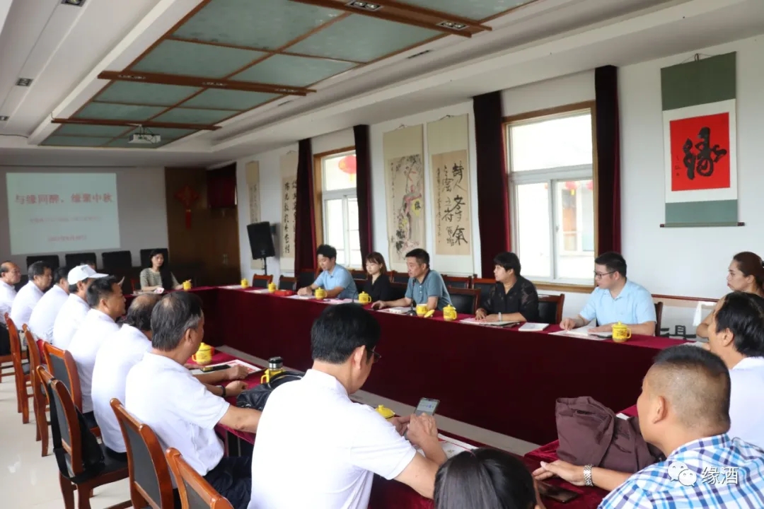 当天上午,大家首先参观了安徽缘酒文化博物馆并一同观展了正在这里举办的“安徽缘酒文化博物馆名家书画收藏展”。随后在集团大会议室开展“与缘同醉,缘聚中秋”安徽新昊诗书画院书画名家缘酒行座谈会,会议由安徽缘酒集团董事长助理钱颖主持,中国缘酒有限公司总经理黄灿灿首先向来到生产基地开展“与缘同醉,缘聚中秋”采风创作活动的各位艺术家朋友介绍了缘酒企业发展概况;缘酒生产基地负责人、安徽缘酒文化博物馆常务馆长彭东瑞向大家介绍缘酒博物馆和生产基地经营状况。