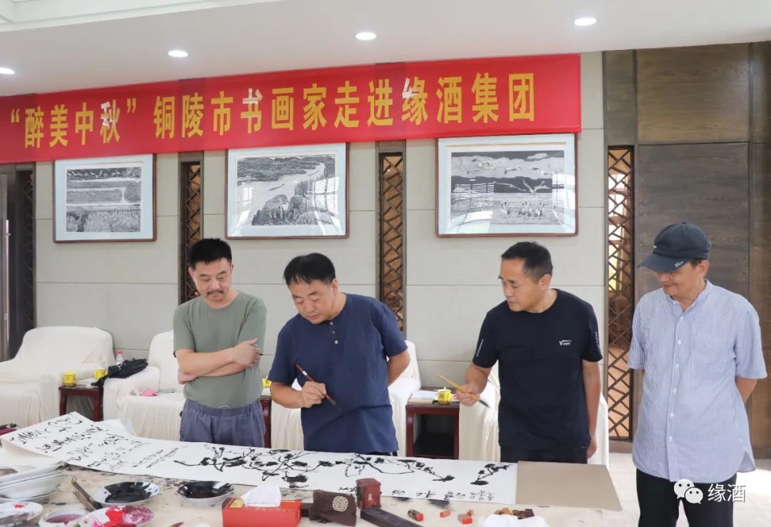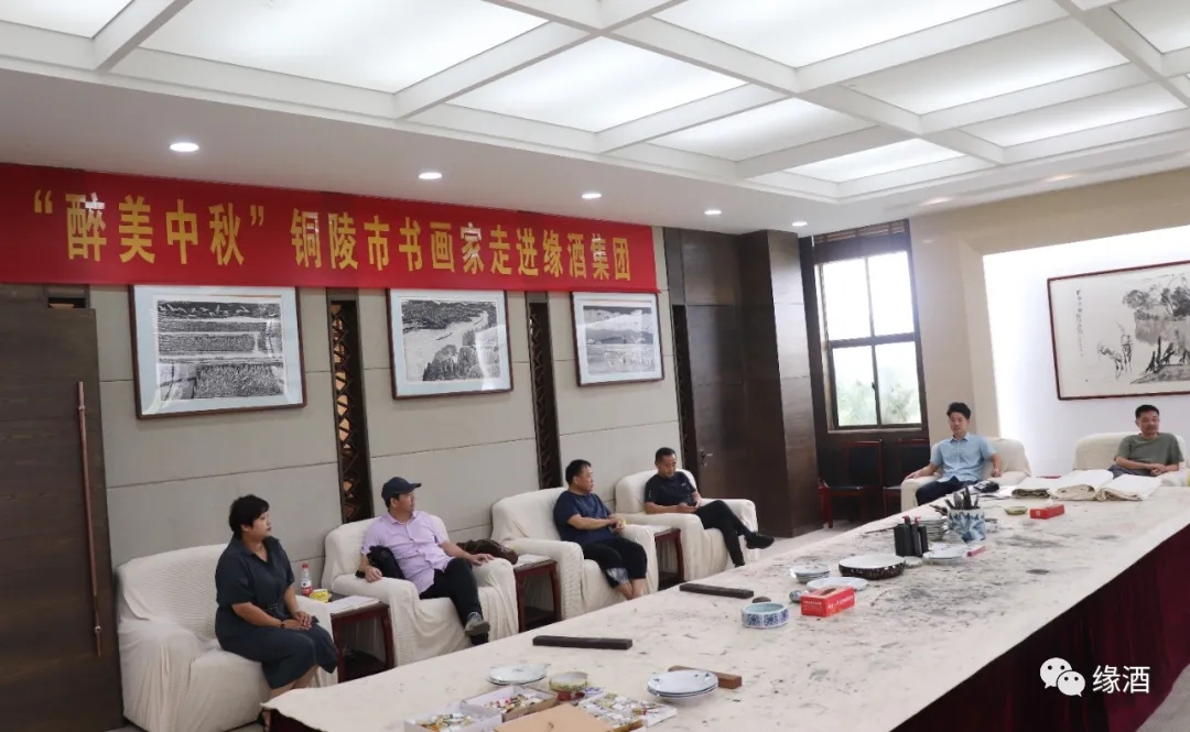 为迎接中秋佳节到来,9月4日上午,应安徽缘酒文化博物馆之邀,铜陵市书画家罗太保一行来到缘酒集团开展“醉美中秋”笔会交流活动。
