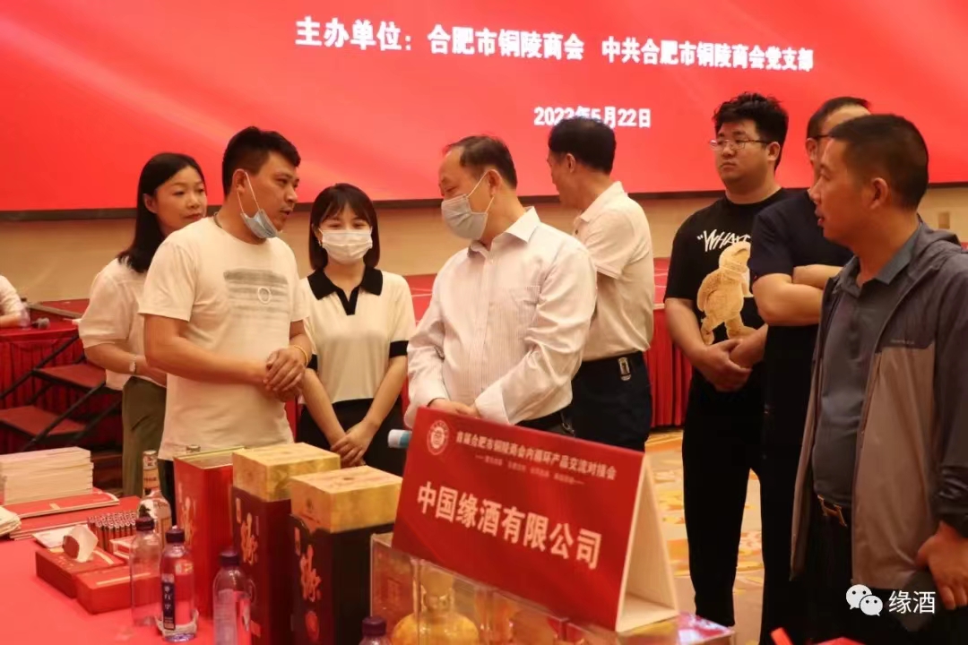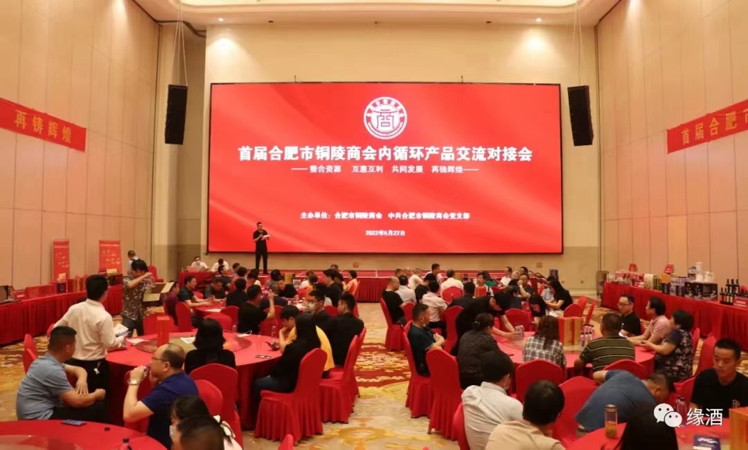 5月22日下午,由合肥市铜陵商会,中共合肥市铜陵商会党支部主办的中国缘酒赞助支持的首届合肥市铜陵商会内循环产品交流对接会在合肥白金汉爵大酒店举办。