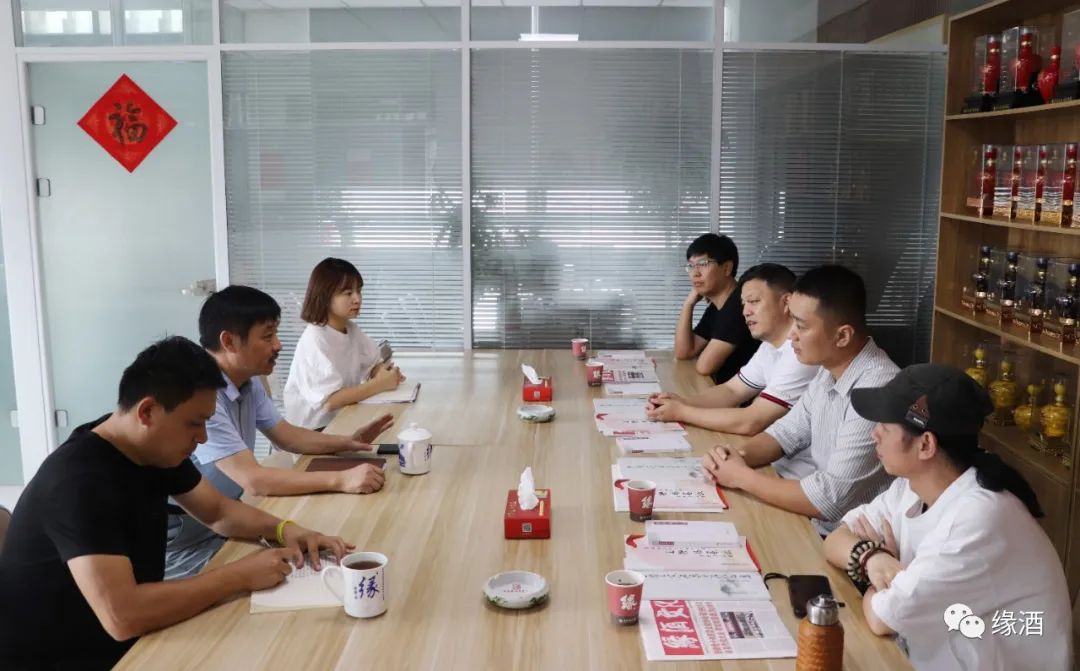 8月16日上午,江西省安徽商会常务副会长、江西省景德镇市安徽商会会长刘福领,安徽省书协隶书委员会秘书长、合肥市包河区书协主席刘才等一行到访中国缘酒合肥品牌运营中心。安徽缘酒文化博物馆馆长黄晔、中国缘酒有限公司总经理黄灿灿、副总经理邵明接待并参加座谈会。