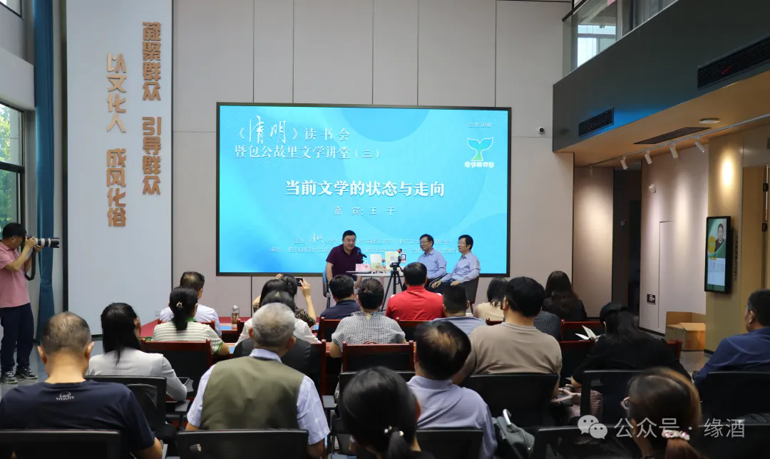 金秋九月,丹桂飘香。9月28日上午,由清明杂志社、肥东县委宣传部、肥东文学艺术界联合会主办,肥东县新时代文明实践工作中心,肥东县文学艺术院合肥东音文化传媒有限公司承办,中国缘酒支持举办的第38期《清明》读书会暨包公文学故里讲堂在肥东县举办。中国作家协会小说委员会委员、作家、学者、书法家王干做了以“当前文学的状态与走向”为主题的文学交流。《清明》杂志社主编赵宏兴,肥东县文联党组书记、主席张业建以及本土作家三十余人参加本次活动,中国缘酒品牌运营中心办公室主任程项参加读书会。