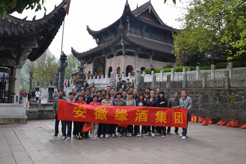 殿外,看着这里的善男信女,让人对那灵异的佛教世界产生无限遐想。因此大家不约而同地烧香礼拜,表达对佛陀的尊敬。也在殿内虔诚的围着大殿顺时针转三圈,面对地藏菩萨所在,祈求缘酒人身心安康、幸福美满,祈求缘酒集团愈做愈大,愈做愈强!并许下愿望。