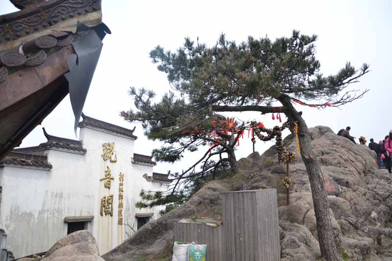 上午8点进入九华山山门,我们改乘当地的旅游小巴,车在蜿蜒崎岖的山道上盘旋,路陡,弯急,坐在车上免不了左右晃动,好奇的向山下望去,云遮雾断妙不可言,非常的状观。大约20分钟就到了九华街。